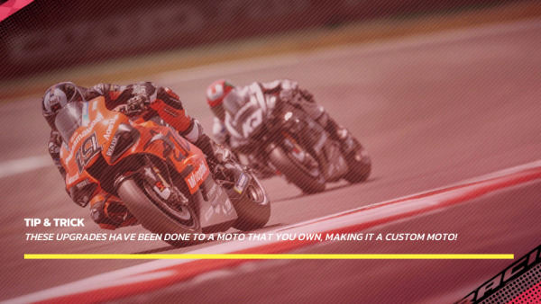 2、我们可以使用各种各样的摩托来进行比赛,每一个摩托的性能都有所不同。