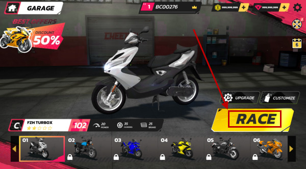 3、完成各种各样的任务和比赛后可以获得大量的奖励,可以用来改装我们的摩托!