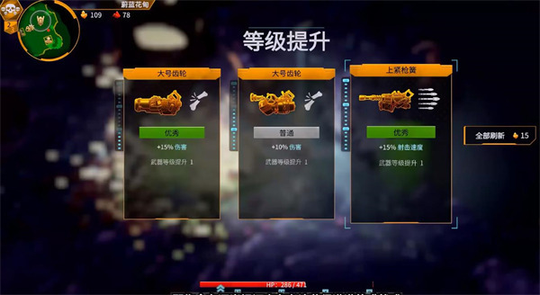 3、虽然游戏中有四种武器,但是输出主要还是靠某一个或两个到达18级解锁终极模组的武器。一局游戏升级最多也就五六十级,加上每次升级中还存在其他增益选择,还有其他武器的增益选项。一局游戏一个武器最多升级到20多级基本就到头了。所以做升级选择的时候切勿雨露均沾,一定要主升一个武器。这里有一个例外就是工程的枪匠这个职业,武器初始就有三级,是有可能两个武器到达18级的存在。不过还是建议先升级单一武器,武器18级解锁带来的增益少说都是输出翻倍。