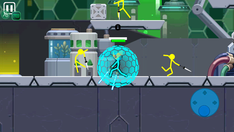 3、游戏中通过右侧的摇杆控制移动和攻击。