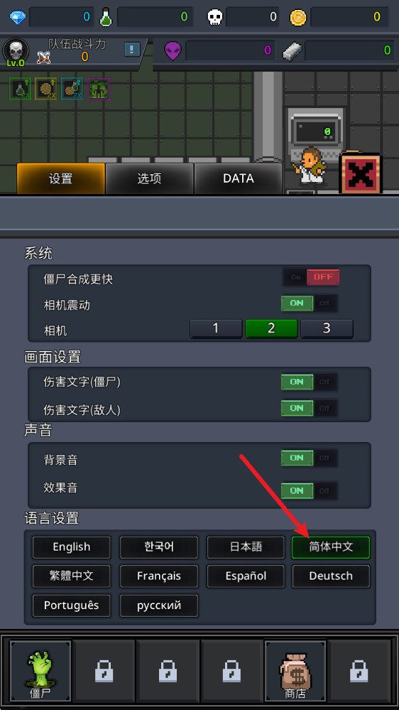 合并僵尸(GrowZombies)内置菜单版怎么设置中文