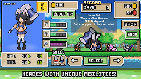 1、下载进入超像素生存,其中拥有大量的角色可供选择,每一个角色都有着独特的属性机制和技能。