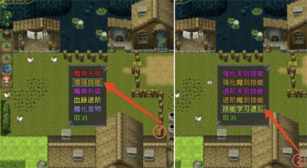 5、第一晚可以选择挂机史莱姆,没有boss,有回血珠基本不会翻车。主角有蓝时会自动释放魔剑技能,如果不想携带可以选择遗忘魔剑技能,遗忘和学习没有任何限制和消耗,但在遗忘时提示会清除技能的强化等级。