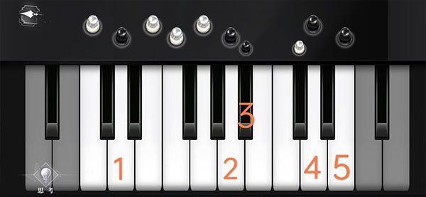钢琴处观察—弹奏,只弹奏白色棋子对应的琴键,同结局一图所示