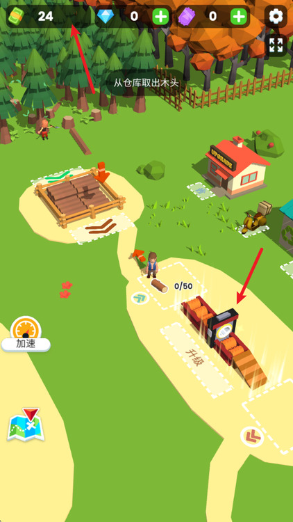 1、首先需要通过升级各种工厂设施,以此来提升木材厂的规模。