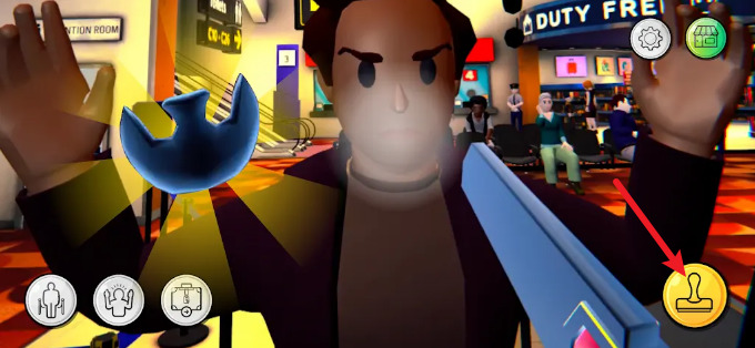 3、对于比较危险的乘客可以用武器来让他举起双手,如果觉得无误就能点击右下角进行盖章,让其通过。