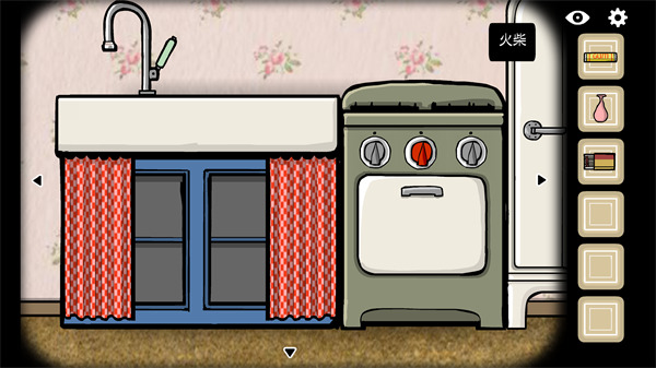 4、先拿地上的气球,将场景切换到厨房并在水池下面拿到火柴。