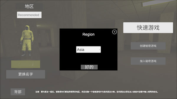 8、选择相同地图、地区后,输入相同的房间名称,