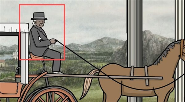 1、玩家将以仆从的身份开始游戏,点击继续,首先在马车上,根据提示可以拉开窗帘看看。