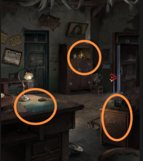 去到另一个场景墙壁位置,点击柜子,柜子凹进去得到照片碎片2。