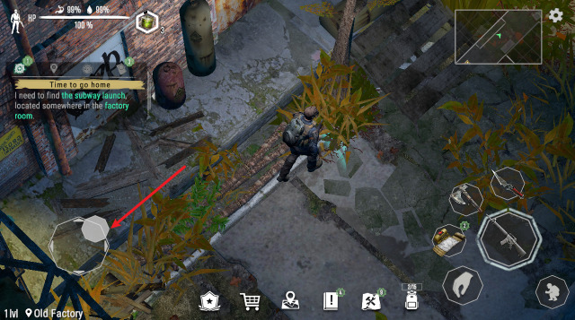 1、进入游戏后,拖动左侧摇杆控制角色移动。