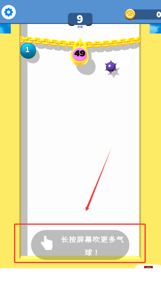 1、游戏开始时需持续按压屏幕为气球充气,观察场景内飞动的尖刺与移动障碍,在气球膨胀过程中保持灵活移动。