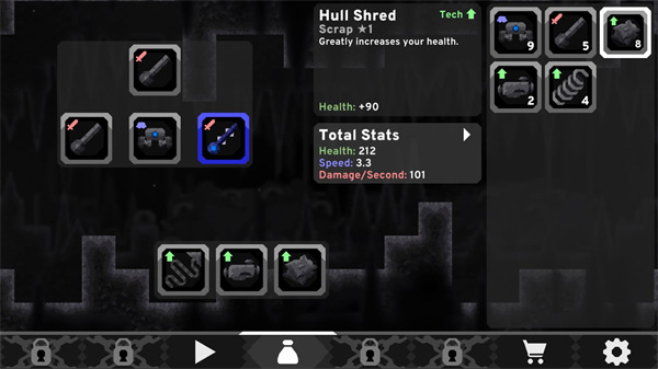 3、各种各样的零件都会等着你去收集和使用,这些零件会有不同的加成效果等着你去选择。
