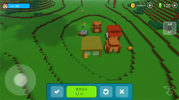 3、点击立即建造后会进入放置界面,可以一个一个方块来放置,也可以使用宝石来快速完成。