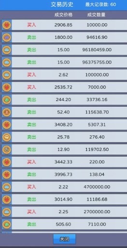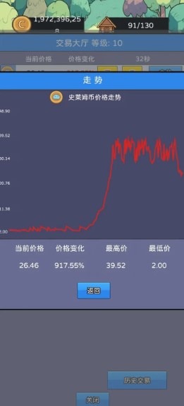 4、所有货币均可通过游戏方式免费获得,全服玩家共享同一个交易所,价格波动公开透明,历史走势清晰可查。