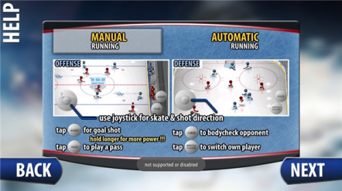 3、使用自动运行模式的,看你的球员的身体检查你的对手。您可以选择您最喜爱的曲棍球队的超过46种不同技能的国家和国际队,并带领他们走向辉煌。