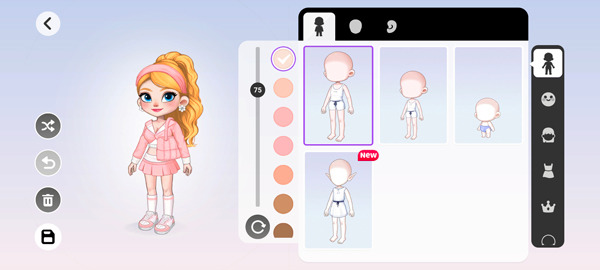YoYa时间官方正版是一款休闲换装游戏,里面有角色创建器,玩家可以设计一个独特的角色,用时尚的服装和亮丽的配饰展现个性风格。玩家可以将角色放置在不同场景中,与角色互动,让其做出各种表情,还可以参与各种有趣的小游戏。这个游戏世界充满无限可能,玩家可以装饰自己的家,无论是舒适的小屋,还是豪华的别墅,从时尚的服装店到商品超市,这里应有尽有。游戏中有许多建筑等待你解锁,还有丰富的娱乐场景和冒险故事等着你探索。感兴趣的朋友,不妨快来实现你脑海中那些创意想法,让它们成为YoYa世界的一部分,书写你的奇幻旅程!