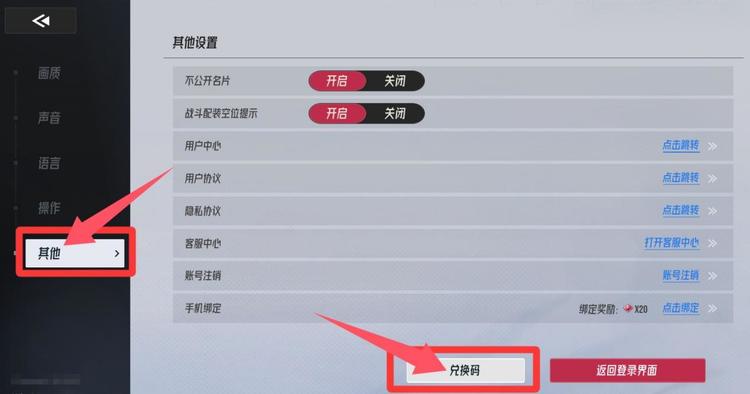 如下图兑换路径:游戏内右上角-设置-其他-兑换码