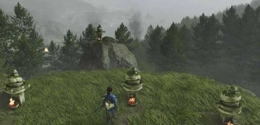解法:将所有4个狐狸雕像转向远方的羊蹄山(面朝东北方向),即朝向悬崖上远方狐狸雕像的方位。虽然无法直接触碰悬崖上的狐狸雕像,但互动其他雕像时它会同步旋转。