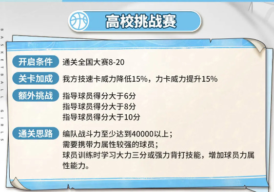 《代号篮球少女》高校挑战赛通关攻略 代号篮球少女高校挑战赛怎么通关
