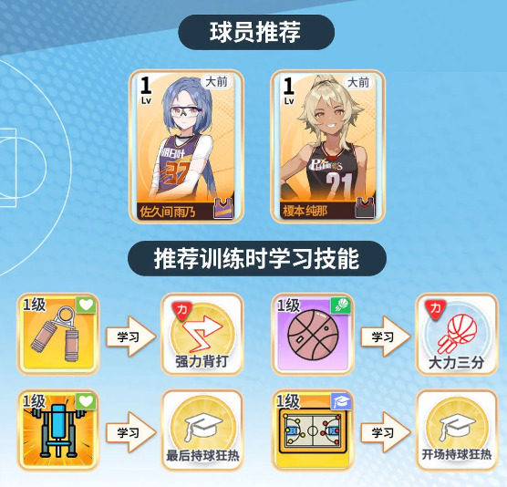 球员训练时学习大力三分或强力背打技能,增加球员力属性能力。