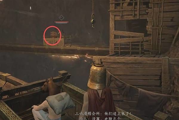 5、使用摄星拿月将中央柱子的机关绳索连接到两侧,放下吊桥,继续前进。