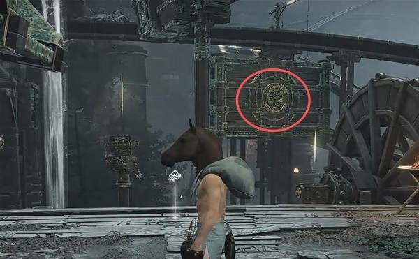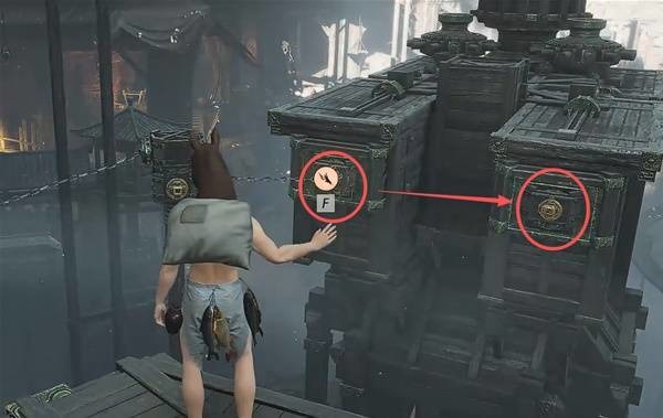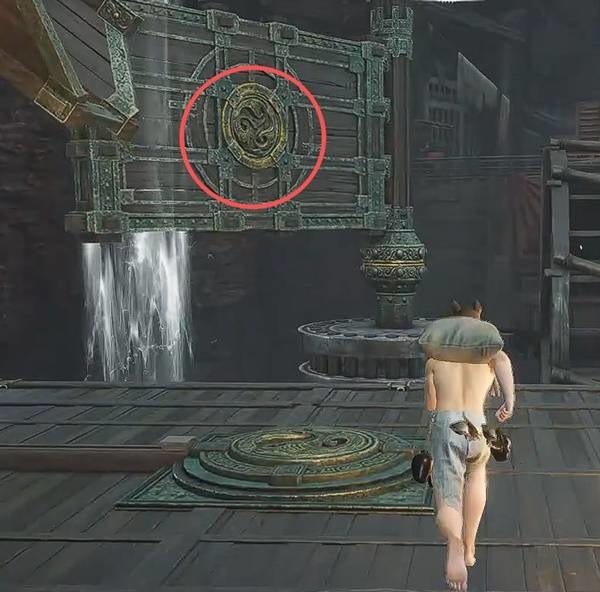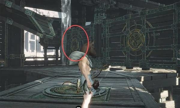 3、走水车右侧的小路绕回楼内,找到第二个发光地板机关。