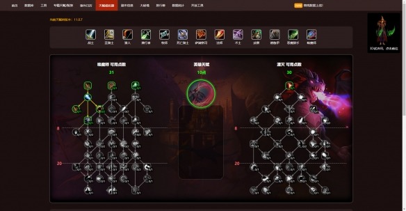 玩家可以在模拟器中选择自己的职业,并尝试不同的天赋加点方案。