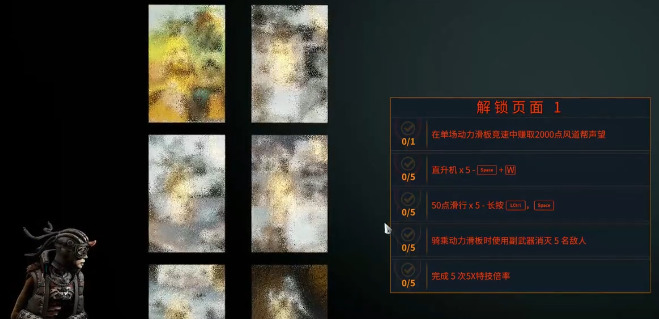 第二项挑战:在动力滑板状态下连续完成5次直升机特技。该动作本质为滑板空中旋转类连招,关键在于操作连贯性——全程不可松开特技触发键。建议初学者在开阔地形反复练习起跳节奏与旋转稳定性,熟练后可在任意滑行途中自然衔接,成功率显著提升。