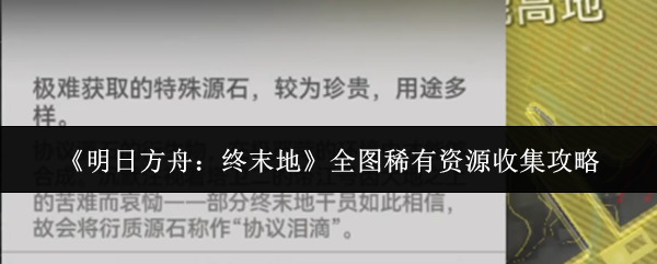 明日方舟终末地全图稀有资源收集攻略 明日方舟终末地全图稀有资源怎么收集