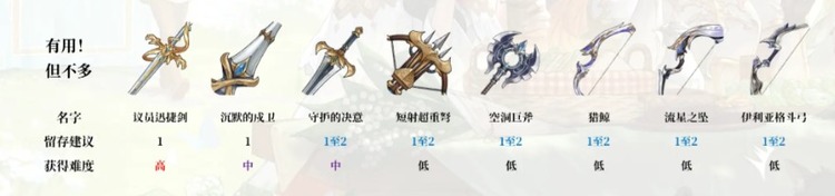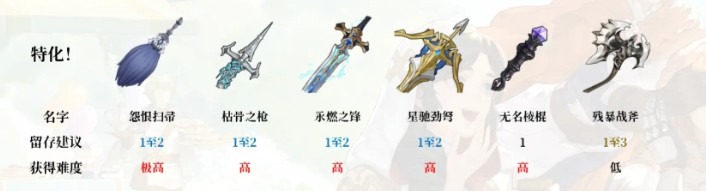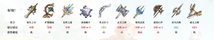 3、对于获取难度低的武器,前期最好存1~2把再考虑升星。
