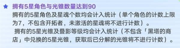 拥有的5星角色及星魂个数均会计入统计(单个角色的计数上限为7,不包含开拓者,未激活的星魂将不进行计数)。