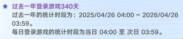 过去一年的统计时段为:2025/04/26 04:00 ~ 2026/04/26 03:59。