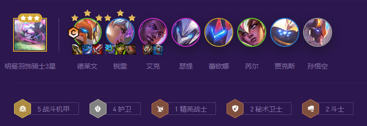 阵容羁绊:5战斗机甲4护卫2秘技2战士2战士